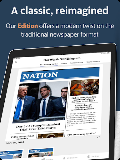 Connect to the Fort Worth Star-Telegram newspaper app wherever you are. Get the latest local and breaking news from Fort Worth, Arlington, Northeast Tarrant County, Dallas and North Texas. The Fort Worth Star-Telegram reports on local topics you care about, including weather, traffic, crime, sports and business news. Features of the app include: • Breaking news alerts and real-time updates. • The local news and sports topics you care about from around the Dallas-Fort Worth Metro area. • View stunning photos and videos of news coverage and events. • The Fort Worth Star-Telegram opinions, editorials and columns you love. • Ability to share stories on Facebook, Twitter or by email. • Edition, a digital destination for the latest news, features, and insights. Like the printed newspaper, it is intended to be a complete report of the day’s news compiled by our editors overnight. Read our Privacy policy here: https://mcclatchy.com/privacy-policy Read our Terms of Service here: https://www.star-telegram.com/customer-service/terms-of-service/text-only/ For California Residents: To learn more about managing your sharing preferences and Do Not Sell My Info rights visit https://www.mcclatchy.com/ccpa-ppa