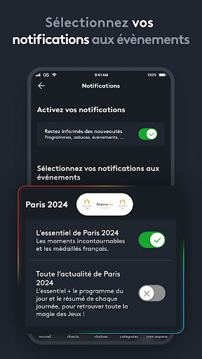 On regarde quoi aujourd’hui ? Avec l’application de France TV, regardez gratuitement toutes vos vidéos préférées : émissions, films, séries, en direct et en replay, diffusions en avant-premières et exclusivités. france.tv est une application gratuite. Aucun paiement, aucun abonnement. ● Séries & fictions : Un si grand soleil, Skam France, Alex Hugo, Astrid et Raphaëlle, Capitaine Marleau… ● Actualités & société : les JT, C politique, C dans l’air, C à vous, le mag de la santé, Ça commence aujourd’hui... ● Documentaires : Infrarouge, Echappées Belles, Des racines & des ailes, Rendez-vous en terre inconnue... ● Divertissements : N’oubliez pas les paroles, Fort Boyard, Drag Race France, Tout le monde veut prendre sa place… ● Sport : tous les grands événements en direct, Tour de France, Roland Garros, Tournoi des VI nations, Jeux olympiques et paralympiques de Paris 2024… ● Jeunesse : toute l’offre Okoo gratuite et sans publicités : Okoo-koo, Peppa Pig, Simon, Les lapins crétins… Ainsi que Lumni, l’offre éducative également gratuite et sans publicités… ● Cinéma : une large sélection de films d’action, d’auteur, romances, thrillers, films pour toute la famille, films d’animation, courts-métrages, en direct, replay. ● Culture : Festival de Cannes, concerts en live, stand up... En avant-première, pour les plus pressés, l’accès à vos séries et programmes du soir est ouvert dès 6h du matin sur l’application : Un si grand soleil, Secrets d’Histoire… Créez votre compte sur l’application france.tv et profitez de toutes ses fonctionnalités : ● REGARDEZ toutes nos chaînes en direct : France 2, France 3, France 4, France 5, Outre-mer La 1ère, France Info, Culturebox, France TV Slash, Okoo. ● AJOUTEZ vos programmes préférés dans l\onglet \ma liste” pour les retrouver facilement ● DIFFUSEZ sur votre écran TV via Chromecast ● REPRENEZ vos vidéos là où vous en étiez ● DÉCOUVREZ des recommandations personnalisées en lien avec ce que vous aimez ● TÉLÉCHARGEZ vos vidéos à regarder quand vous n’avez pas de connexion* *Le téléchargement n’est pas encore possible pour tous les programmes. Nous travaillons à vous proposer de plus en plus de vidéos disponibles au téléchargement. Avertissement : Cette application est gratuite hors coût d’abonnement à l’opérateur et hors surcoût éventuel facturé par l’opérateur pour le chargement et l’envoi des données. L’utilisation de cette application pouvant engendrer une consommation importante de données, notamment lors du visionnage de vidéos, France Télévisions vous recommande de vérifier auprès de votre opérateur mobile que vous disposez bien d’un abonnement adapté à cet usage. La politique de confidentialité ne change pas : vos données personnelles sont protégées et ne sont pas revendues. Vous pouvez à tout moment accéder à vos données, les modifier ou les supprimer. Pour des raisons juridiques de droits de diffusion, certaines vidéos ne sont pas accessibles en dehors du territoire français. France Télévisions se réserve le droit de ne pas autoriser l’installation de cette application sur les terminaux sur lesquels la qualité de lecture de ses vidéos sera jugée insuffisante. Nous avons à cœur de faire évoluer l’application pour intégrer de nouvelles fonctionnalités. Envoyez-nous vos suggestions ou signalez-nous les éventuels problèmes en utilisant le formulaire de contact : https://www.france.tv/services/aide-contact.html Pour rester en contact avec vos programmes préférés : ● rejoignez nos réseaux sociaux : https://www.facebook.com/francetv https://twitter.com/francetv https://www.instagram.com/france.tv/ https://www.tiktok.com/@france.tv?lang=fr https://www.youtube.com/francetv ● inscrivez-vous à nos newsletters thématiques : www.francetelevisions.fr/abonnements