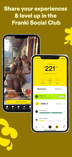 FINDING A REWARDING EXPERIENCE JUST BECAME A REWARDING EXPERIENCE. Whether you like to be on the pulse of the city, or just want to find a good spot to eat, we’re glad you’re here. Because we can help you do it - and reward you for it along the way. It’s simple. If you’re looking for something to eat or drink, we make it easy to discover the best spots in town. And if you try something you find (or something you already love), we’ll give you cash back. At thousands of top restaurants. The more you explore, the more you earn. Life is about experiences, and we want you to have more of them. FIND, SHARE, SHOW, EARN: THE FRANKI SOCIAL CLUB. Experiences are best when they’re shared. So we built The Franki Social Club: a not-so-secret community of people looking to find and share the best experiences in the city, and a tiered rewards program that lets you earn the more you share. Because oversharing is caring. If you’re not so much into sharing, don’t worry. You’ll still get cash back just for exploring. And if you are, then you can earn even more as you level up through the Club: - Earn cash rewards for posting videos - Unlock revenue share to participate in the profits your video recommendations drive to local businesses - Complete video challenges for cash bonuses - Become a Franki Insider and get access to exclusive events and opportunities to earn. DINE BETTER. DRINK HAPPIER. LIVE YOUR BEST LIFE. There are two considerations when going out: where to go, and how much it costs. With our rewards system and cash back offers, we help ease the latter. But with our new layout and functionality, finding the right spot has never been easier. See what your friends have loved in town Follow local drink & dining connoisseurs Get recommendations from a community of insiders Watch videos of the hottest spots from top foodies & content creators Stay up to date on trending restaurants in the city FRANKI FOR BUSINESS: BECOME THE TREND. A successful hospitality business requires one thing: derriere’s in chairs. We can help you reach a wider audience of hungry customers with our ad suite boasting high-quality video content, risk-free promotions, and transparent, real-time ROI. Claim your listing, reach more customers, and join the city\s highest-rated drink & dining venues.