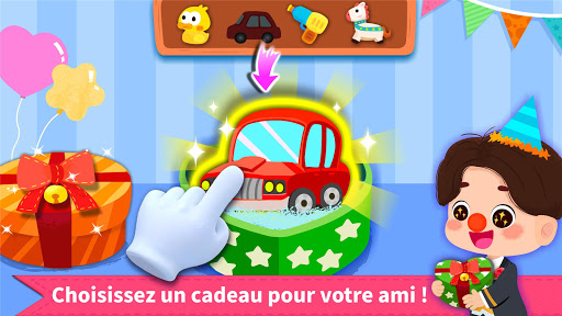 Allons-y à la fête d’anniversaire de Bébé Panda ! Vous pouvez préparer un cadeau d\anniversaire original, vous habillez de façon impressionnante et aller à la fête ! Description du produit : Allez à la fête avec un cadeau fait à la main, qui montrera non seulement votre respect, mais développera également votre imagination ! Faites un gâteau d\anniversaire. Le gâteau d\anniversaire pourrait être votre premier cadeau ! Mélangez la farine, les œufs, le sucre et le fromage, versez-les dans les moules et faites-les cuire au four. Puis, décorez votre gâteau avec de la crème fouettée et des fruits ! Faites une carte d\anniversaire. La carte d\anniversaire pourrait être votre second cadeau ! Sélectionnez la carte d\anniversaire que vous aimez, écrivez vos meilleurs vœux et peignez-la avec une jolie couleur, puis décorez-la avec des autocollants tels que des fleurs, des plantes, des coffrets cadeaux, etc. Choisissez un grand coffret cadeau pour la fête. Le cadeau de tiers : un coffret cadeau avec des collations ! Choisissez vos collations préférées et placez-les soigneusement dans un coffret cadeau, enveloppez le coffret avec du joli papier cadeau et décorez-le avec un nœud. Vos cadeaux de fête sont tous prêts ! Une jolie tenue peut montrer vos bonnes manières et votre respect pour l\hôte ! Préparez une nouvelle coiffure et présentez-vous à la fête avec votre nouveau look ! Mettez la robe du soir, portez de jolies boucles d\oreilles et un collier et choisissez un sac à main pour aller avec votre robe. Puis, apportez vos cadeaux à la fête ! Organisez la fête avec Bébé Panda et partagez votre joie ! Utilisez une pompe pour gonfler les ballons, faites-les flotter dans les airs et suspendez des drapeaux colorés au mur ! Remplissez les assiettes avec des beignets, de la crème glacée, des frites et d’autres aliments que vous aimez. Commençons la fête ! Grâce à vos cadeaux et votre aide, la fête de Bébé Panda est très réussie. Je vous souhaite de bien profiter de la fête vous aussi ! Caractéristiques du produit : - Apprenez à faire un gâteau d\anniversaire ! - Devenez styliste et créez votre look pour la fête ! - 57 types de décorations pour les cadeaux d\anniversaire et les fêtes ! - Découvrez les convenances d’usage pour les fêtes ! À propos de BabyBus ————— Chez BabyBus, nous nous consacrons à stimuler la créativité, l\imagination et la curiosité des enfants, et nous nous efforçons de concevoir nos produits à travers les yeux des enfants afin de les aider à explorer le monde par eux-mêmes. BabyBus propose une grande variété de produits, vidéos et autres contenus éducatifs à plus de 400 millions de fans âgés de 0 à 8 ans à travers le monde ! Nous avons publié plus de 200 applications éducatives pour enfants, plus de 2 500 épisodes de comptines et des animations de différents thèmes couvrant la santé, la langue, la société, la science, l\art et d\autres domaines. ————— E-mail pour nous contacter : ser@babybus.com Visitez notre site Web : http://www.babybus.com