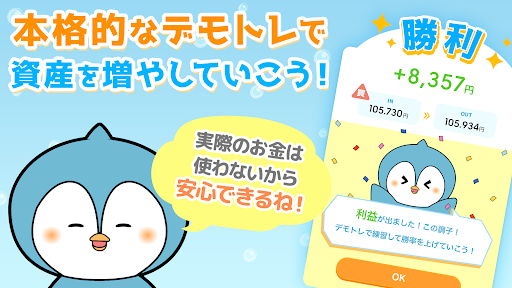 日本一の株アプリ(150万予想!)運営チームが待望のFXバージョンをリリース! 初心者でもFXがサクサク分かる7つの機能を搭載! 主な機能、ツールは、為替予想練習のバーチャル、デモトレード。他のユーザーをフォローしたり意見交換できるタイムライン。ニュース、ユーザープロフィール、初心者向け無料コンテンツ、自分の投資傾向の分析などになります! 【為替の値動きをみんなで予想!】 かるFXは各為替相場の値動きをゲーム感覚で予想していくだけでFXのセンスが身につくアプリです。 初心者・経験者問わず意見交換が可能で、FXや投資についてのニュースや経済イベントを見ながら気軽に参加できるアプリです。 デモ、バーチャルトレードを重ねるごとに、自分の投資傾向を分析することもでき、また実際にやりたいときでもそのまま売買へ移ることができます。 株をやったことある人も、株をやったことない人も、是非FXの世界をお楽しみください! 【主な特徴と機能】 *為替の予想* ドル円やユーロ円など各為替相場において、次の1時間以内の値動きを、ユーザーの好きなタイミングでバーチャル、デモトレードすることができます。 チャートやニュースなどを見ながら為替を予想し、取引での損益額や資産額などで競い合うことができるなど、ゲーム感覚で楽しむことができます。 シミュレーションでFXの売買を楽しめるため、実際に投資を始める前の初心者入門編としてお楽しみいただけます。 *毎週開催!FXダービー* 新機能!毎週開催のFXダービー!総資産の増減率を競って上位を目指そう! 上位入賞者にはAmazonギフト券5万円分など、豪華賞品をプレゼント! FX初心者でもランクインするチャンスあり! *タイムライン* ユーザーはタイムラインでコメントをすることができ、他のユーザーへ返信やいいね!でコミュニケーションをとることができます。 また、気になるユーザーをフォローしてチェックすることもでき、FXや投資についての意見交換をタイムラインで行います。 *ニュース* 為替相場に影響を与えるニュースや経済イベントを見ることができます。 FXに関連するニュースを中心にまとめられているため、専門知識を得ることができます。 *かるFXスクール* FX初心者/未経験者のためのサクサク読めるFXの入門コンテンツをご用意いたしました。詳しくは帽子のマークのアイコン「かるFXスクール」をご覧ください。 概要や始め方が会話形式で展開されているため、初心者向けの情報講座/説明書(入門)になっています。 *こんな人にオススメ* ・初心者でデモトレードやチャート分析をして学びたい人 ・初心者であるため、どこのFXデモトレードを使用して学んでいいか分からない人 ・FX、株など投資に興味があり、投資ゲームでまずは体験して知見をつけたい人 ・ゲーム感覚でデモトレード体験やチャート分析や検証をしてみたい人やFXゲームを探している人 ・チャートやFXデモトレードで検証できるアプリを探している人 ・FXや株など投資に興味があり、デモトレードやチャート分析など検証したい人 ・デモトレードで検証をして本格的に投資をやってみたい人 ・初心者でもチャートやデモトレードがゲーム感覚で体験できるアプリを探している人 ・FXや株のシミュレーションで学び、将来は副業をしてお金を稼いでみたいと考えている人 ・FXや株などの投資をやってみたいけど、初心者であるためゲームやデモトレードで体験したい人 ・デモトレードで学んで、将来は副業として稼ぎたいと考えている人 ・副業としてお小遣い稼ぎをしたく勉強したいと考えている人 ・デモトレードで始めてチャート分析など体験できる投資ゲームを探している人 ・デモトレードで学んで、副業として稼ぎたいと考えている人 ・デモトレードでゲーム感覚で学んで本格的にやりたいと思っている人 ・デモトレードで知識をつけて、投資をしたいと考えている人
