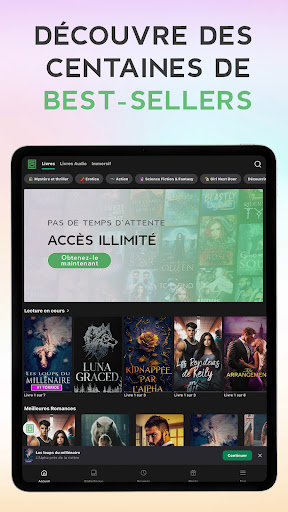 Lis des best-sellers avec Galatea - l’expérience de lecture ultime que tu ne lâcheras plus ! Grâce à une vaste bibliothèque d’ebooks et de livres audio, tu trouveras ta nouvelle histoire préférée: des romans épiques et fantastiques aux romances (paranormales), thrillers, histoires d’amour contemporaines et science-fiction. Profite d\une collection d\histoires captivantes en constante croissance, écrites par tes auteurs préférés. Devore les livres ou lis-les occasionnellement Chaque chapitre dure environ 15 minutes - lis à ton propre rythme, que ce soit un chapitre dans le métro ou un roman entier chez toi. Plonge-toi dans ton histoire préférée, où que tu sois, quand tu le souhaites ! Des lectures à l’infini pour tous les goûts Nos best-sellers s’étendent sur plusieurs saisons et de nouveaux livres et chapitres sont régulièrement publiés - pour que tu ne sois jamais à court de lecture ! Une expérience de lecture révolutionnaire Plonge plus profondément que jamais dans ton histoire grâce à des éléments immersifs comme la musique ou les effets sonores et atmosphériques. Choisis parmi une multitude de langues Tu ne veux pas lire uniquement en français ? Pas de problème, Galatea te propose également des titres en anglais, allemand, espagnol, russe et portugais. Une app de lecture parfaitement adaptée à toi Profite de ton livre préféré le soir en mode sombre ou même lorsque tu es hors ligne. Soutiens les auteurs indépendants Lis des histoires gratuitement ou soutiens des auteurs indépendants en achetant directement des chapitres. Pour un accès illimité à un nombre d\histoire chaque jour plus grand, tu peux souscrire un abonnement dont tes auteurs préférés profiteront directement ! Suis-nous sur TikTok, Instagram et Facebook pour les meilleurs conseils de lecture et rejoins notre communauté du club de lecture ! TikTok: https://www.tiktok.com/@galatea.stories Instagram: https://www.instagram.com/galatea.stories/ Facebook: https://www.facebook.com/groups/244755342940818 --- L\application de lecture immersive Galatea a été développée par Inkitt (Free Novels Inc.). En utilisant Galatea, vous acceptez nos Conditions d\Utilisation et nos Directives Communautaires (https://getgalatea.com/terms/), ainsi que notre Politique de Confidentialité (https://getgalatea.com/privacy).