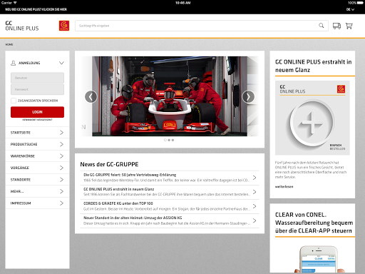 GC ONLINE PLUS Rund um die Uhr informieren und bestellen – von überall: Die GC-APP macht es möglich. Die APP bietet Ihnen geräteübergreifend sämtliche Funktionen unseres ONLINE-Shops GC ONLINE PLUS. Wir machen Sie unabhängig vom WLAN Ihres Kunden. Legen Sie mit der GC-APP bequem offline Warenkörbe an. Sie suchen eines unserer bundesweit über 800 Abholexpressläger? Kein Problem. Die GC-APP findet das ABEX in Ihrer Nähe. Natürlich halten wir Sie mit der GC-APP auf dem Laufenden, informieren über Neuigkeiten aus den Sortimenten Sanitär, Heizung, Lüftung/Klima, Installation, Brandschutz, Dachtechnik, Werkzeug und Tiefbau sowie Veranstaltungen in Ihrer Region. Nutzen Sie den Komplettservice für die Hosentasche.