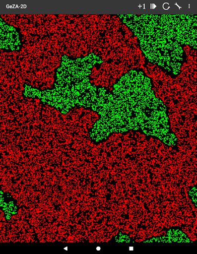 Simulation of several 2-dimensional cellular automata (Game of Life, Wator, Brians Brain, Margolus, Zhabotinsky..) You may define your own rules and neighborhood very easy. An new kind of ruling scheme is introduced here for the first time. Use the very attractive predefined examples (>130) for easy start!. The basic types checkerboard and honeycomb pattern are supported. Additional there is the WaTor simulation, the Brian\s Brain CA, a simulation of ideal gas (HPP gas), the margolus neighborhood with free definition of rule and the new Zhabotinsky CA. Save and load your self defined Automata. Creating animated GIFs are supported and very simple in use. Totally free and without advertising! Hint: For 1-dim CA install the app GeZA from the Google Play Store!