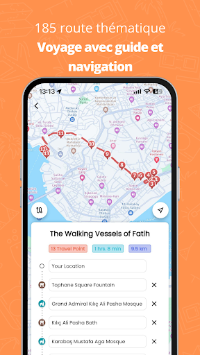 Voyagez avec un audioguide numérique avec 185 itinéraires différents prêts à l\emploi dans 20 villes différentes de Turquie ! ️ Les billets sont pour vous, la visite est pour nous. Ne perdez pas de temps à préparer votre itinéraire de voyage en Turquie. GeziBilen vous propose des itinéraires de voyage prêts à l\emploi dans les villes les plus populaires de Turquie telles qu\Istanbul, Antalya et Ankara. Tout en offrant cela, il explique également l\emplacement en détail avec sa fonction de navigation et son audioguide en 4 langues, anglais, turc, allemand et russe, sur les points touristiques que vous atteignez. Nos itinéraires de voyage ont été personnellement explorés, préparés et ajoutés à l\application par notre équipe de guides professionnels. Parallèlement, les enregistrements vocaux de l\audioguide inclus dans l\application ont été enregistrés par des locuteurs natifs dans des environnements d\enregistrement professionnels par l\intermédiaire d\artistes professionnels. D\autre part, 2 500 points de voyage à travers la Turquie ont été visités et photographiés un par un. GeziBilen souhaite offrir à ses utilisateurs une véritable expérience de guide de voyage. Vous économiserez du temps et de l\argent grâce à l\audioguide numérique GeziBilen pour créer un itinéraire de voyage avant de planifier vos vacances. Si vous n\avez pas le temps et que vous vous trouvez dans l\une des villes que nous soutenons, téléchargez dès maintenant l\application pour découvrir nos itinéraires d\une demi-journée que nous avons préparés spécifiquement pour les personnes qui « n\ont pas le temps ». Nos fonctionnalités ️Itinéraires précis et sûrs : Nous avons préparé 185 itinéraires différents dans 20 villes de Turquie. Ces itinéraires comprennent des itinéraires adaptés à vos besoins, tels que des itinéraires pédestres, des itinéraires cyclables et des itinéraires automobiles. Parallèlement, des itinéraires naturels, historiques, religieux ou gastronomiques sont également inclus en fonction de votre intérêt. Tous les itinéraires ont été préparés par notre équipe, confirmant leur précision et leur sécurité. Pendant que vous parcourez l\itinéraire instantanément, le point de visite que vous avez visité est marqué sur la carte, vous ne perdez donc pas de temps à vous rendre à nouveau au même endroit. Navigation : Grâce à notre infrastructure de navigation, GeziBilen vous amènera avec précision au début de l\itinéraire, peu importe où vous vous trouvez dans la ville. Audioguide : Les narrations des points touristiques sur les itinéraires de voyage sont enregistrées dans un environnement professionnel par des artistes vocaux professionnels. Mettez vos écouteurs et concentrez-vous sur la magnificence des lieux que vous visitez. N\interrompez pas et ne manquez pas le moment. Si vous n\avez pas d\écouteurs, ne vous inquiétez pas, vous pouvez trouver des descriptions écrites de chaque site touristique dans l\application. Réseau de voyageurs : Nous disposons également d\un espace où vous pouvez partager ces merveilleux moments de vos voyages avec d\autres voyageurs. Vous pouvez inspirer d’autres voyageurs en partageant vos réflexions ou vos photos ici. Ou vous pouvez trouver des compagnons de voyage avant le voyage. Privilèges Premium Accès illimité à tous les itinéraires hebdomadaires, mensuels ou annuels, Fonction de navigation, Villes que nous soutenons En tant que GeziBilen, nous avons pour objectif de fournir des informations précises et sûres à nos utilisateurs qui voyageront. C\est pourquoi nous avons commencé notre travail en choisissant les 20 villes les plus touristiques de Turquie. Les provinces que nous soutenons : Istanbul, Ankara, Izmir, Antalya, Artvin, Bursa, Çanakkale, Edirne, Erzurum, Gaziantep, Hatay, Kars, Kastamonu, Konya, Mardin, Muğla, Nevşehir, Trabzon, Şanlıurfa et Van.