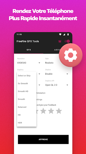 Notre outil GFX est la meilleure solution d\amélioration de l\expérience de jeu pour la meilleure expérience de jeu. Utilisez Booster jeu et vivez un expérience GFX gaming pro. Vous pouvez enfin vous concentrer sur le gaming, nous nous occupons du reste. Jouez en haute résolution sans latence, Déverrouillez les graphismes HDR sur des appareils bas de gamme, Booster jeu - déverrouillez le niveau FPS Extrême, Changez le style de graphisme avec le meilleur Booster jeu ! GFX Tool est une application qui vous permet de personnaliser les graphismes et d\affiner votre expérience de jeu sur les appareils mobiles. Plus précisément, il est conçu pour améliorer les performances visuelles des jeux Android en vous offrant diverses options pour ajuster les paramètres graphiques selon vos préférences. Débloquez des performances de jeu maximales avec l\outil GFX ultime et le boost FPS ! Note : GFX Tool - accélération du jeu n’est affilié à aucune autre application et ne revendique pas détenir la marque déposée, le nom ou le logo de toute application tierce.