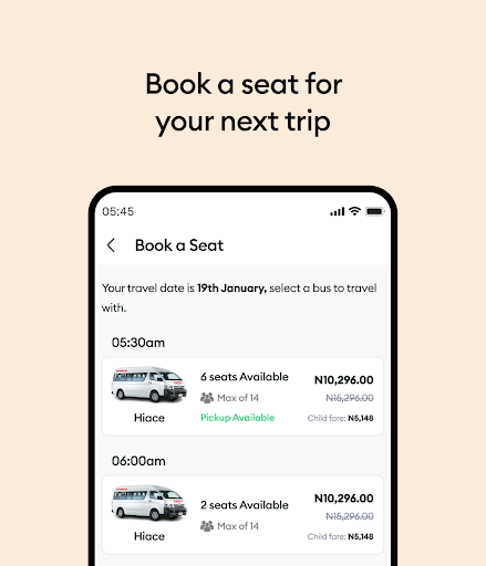 The official mobile application of GIG Mobility. This application is very simple and easy to use. You can book your bus travel ticket without boundaries. Accessible anytime anywhere. You can also track all your booking activities and get up to date information from the mobile application. Guess what\s new? You can now subscribe for a pick up service right from your mobile app, by this we mean that you can save yourself the hassle of going to a GIGM terminal or shorten your travel time by opting to be picked up from any of our several pick up locations. Indeed, we are taking road transportation within Nigeria to another level. This application basically brings road transportation closer to you in a unique and convenient way. So what are you waiting for? Join the community of people, utilizing this application to solve road travel needs everyday.