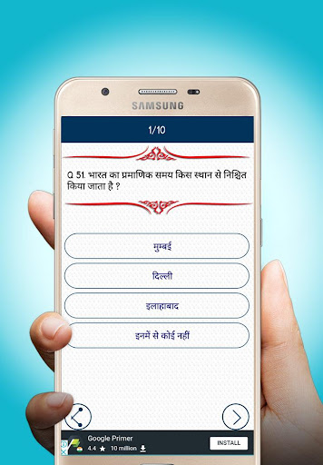 Welcome to GK Quiz In Hindi (General knowledge) Quiz App. Let\s improve general knowledge just playing simple game on our national language. The GK in Hindi is best app for improve our General Knowledge in Hindi language. This app will be updated frequently and we will keep adding new questions so you can more enjoy and learn about new(latest) question of all categories. This is one of the best offline Test Preparation App currently in Hindi. Categories: Banking Awareness Books Author Sports Computer Knowledge Mix Questions Culture History of India Geography Economics Indian Railway GK Quiz In Hindi Bank GK Quiz In Hindi General Science GK Quiz In Hindi Physics GK Quiz Chemistry GK Quiz Biology GK Quiz In Hindi First In India GK Quiz In Hindi Hindi Grammar GK Quiz Psychology GK Quiz In Hindi Discovery and Invention GK In Hindi India GK in Hindi General science GK in Hindi Geography GK in Hindi Indian Constitution in Hindi aptitude In Hindi World GK In Hindi Current Affairs in Hindi Disclaimer: we respect the copyrights, trademarks and intellectual property of others and also we expect this from other users. In this app, if you found any information that is owned by you or any content that violates your intellectual property rights, please contact to us at myselfdevthakur@gmail.com Thanks Team GK Quiz In Hindi