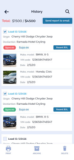 Are you looking for a load that is the most suitable for you? Are you a hotshot car hauler or working for the company? Use GOFORIT for Transporters to check available loads near you, Send offers, Accept rates, or negotiate them. Contact dealers or brokers directly from the app. Simply switch on/off your availability on the map so dealers and brokers will/will not see where you currently are to send you loads. Set your searching criteria, such as minimum $ per mile per car, number of cars you can take, are you willing to take INOPs or not, do you have an enclosed trailer? Once the load is booked you will get all required information instantly, then you can contact pickup and destination parties, inspect the vehicle, obtain electronic proof of pickup or delivery. Our inspection diagram is the easiest to use and very helpful whether you are transporting old vehicles not requiring thorough inspection or expensive vehicles when you are required to mark damages by sizes and exact location. If you are an owner-operator working for your own company GOFORIT App is an absolutely great tool to track payments, simply mark paid loads as green and unpaid as red, GOFORIT history page provides statistics on how much you make as a driver or owner-operator.