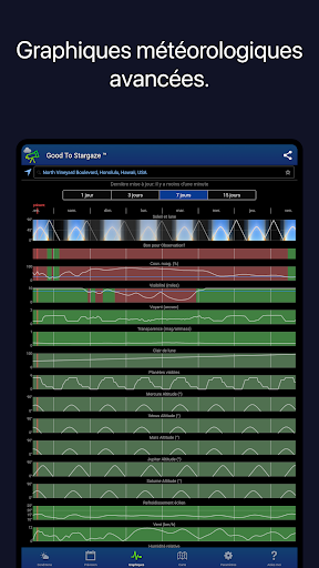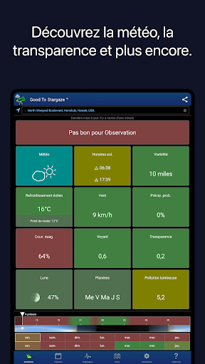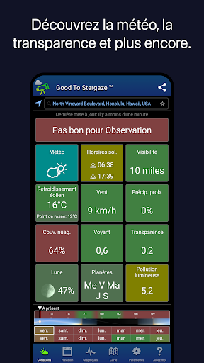 Quand sera-t-il bon d\observer les étoiles ? Consultez les prévisions météorologiques, la visibilité, la transparence et la pollution lumineuse, le tout dans un outil pratique. Parfait pour les astronomes amateurs et professionnels, pour l\observation à l\œil nu, avec des jumelles ou des télescopes.
