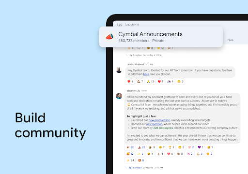 Google Chat est un outil de communication intelligent et sécurisé, conçu pour les équipes. Des messages privés aux salles de clavardage en équipe, Google Chat offre une plateforme intégrée qui permet aux équipes de communiquer de façon simple et efficace. La version actuelle est réservée aux clients de Google Workspace. • Messagerie de groupe qui permet le partage des contenus Google Workspace (Documents, Feuilles de calcul et Présentations), sans que vous ayez à vous soucier de l\octroi d\autorisations. • Fonctionnalité Recherche Google, avec options de filtrage des conversations et des contenus que vous avez partagés. • Intégration à Google Workspace et à des outils tiers prochainement disponible. Le robot Google Meet vérifie les agendas de tous les utilisateurs et planifie les réunions à des moments qui conviennent à tous. • Application conçue pour les entreprises, avec tous les avantages de la sécurité et des contrôles d\accès Google Workspace, y compris la prévention de la perte de données, la conformité, les paramètres d\administration, ainsi que la rétention, la conservation, la recherche et l\exportation dans Vault.