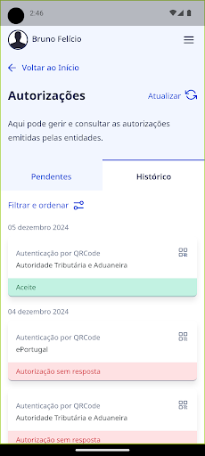 Aplicação oficial da administração pública portuguesa que dá acesso a vários serviços de identidade digital, autenticação e assinatura digital. (substitui as antigas apps id.gov.pt e autenticacao.gov) Documento digitais Nesta app pode adicionar e gerir vários documentos oficiais (ex. Cartão de Cidadão, carta de condução, entre outros), que têm validade legal. Também pode validar documentos digitais, apresentados na mesma app a partir de outros dispositivos. Autenticação Através da app consegue gerir várias funcionalidades da Chave Móvel Digital (CMD) e assinar documentos .pdf. Pode receber os códigos de acesso, alterar os dados associados à Chave Móvel Digital e gerir as autorizações da CMD. Pode também ativar os certificados do seu Cartão de Cidadão ou voltar a ativar a CMD através da aplicação. Novos serviços em breve Ao longo dos próximos meses a app gov.pt irá integrar cada vez mais serviços digitais de áreas e entidades diferentes, tornando-se num dos principais canais para interagir com os serviços públicos em Portugal. Mais novidades em breve!