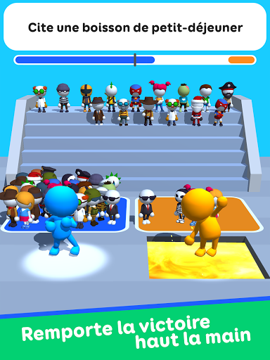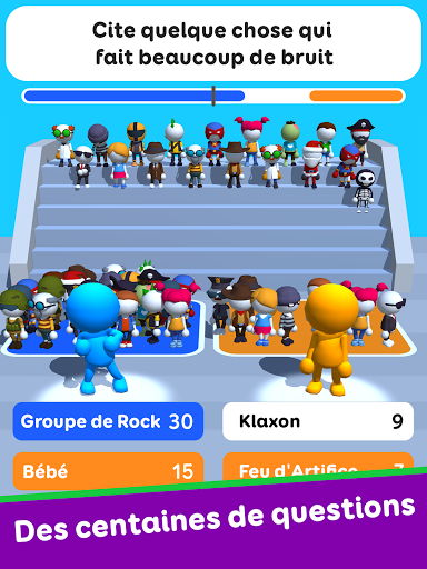 Testez votre niveau d\intelligence et élucidez les questions des jeux-questionnaires ! Certaines personnes ont une capacité étonnante à deviner leurs réponses. Elles ont un niveau de QI élevé et sont très douées pour savoir ce que pensent les autres. Si vous êtes ce genre de personne, ce jeu d\enquête amusant est fait pour vous ! Dans ce jeu amusant, tu dois deviner la réponse des autres joueurs à une certaine question. Il peut s\agir de n\importe quoi, alors prononcez le premier mot qui vous vient à l\esprit dans les jeux de quiz. Tapez ensuite votre réponse aussi vite que possible dans les jeux de dactylographie. Comparez votre réponse avec celles des autres joueurs et répondez aux questions des jeux de texte. Devinez leurs réponses, montrez vos compétences en matière de jeux de texte pour gagner les jeux-questionnaires. Des centaines de questions et des milliers de jeux de mots à deviner. Un mélange de jeux amusants, de jeux de mots et de jeux-questionnaires. Montrez vos talents de texto et tapez des mots aussi vite que possible dans les jeux de mots. Déverrouillez plus de 75 costumes. Voulez-vous jouer à ce jeu de devinettes en ligne et voir combien de mots vous pouvez deviner ? Vous allez adorer cette application de quiz, de jeux de mots ou de trivia si vous jouez déjà à des jeux de mots, de quiz, de tapotement ou de trivia. Appuyez sur le bouton Installer pour commencer à jouer à des jeux de quiz dès maintenant !