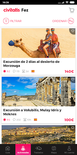 Ce guide de Fès est entièrement gratuit, et a été créé par l\équipe de Civitatis, l\entreprise leader dans la vente de visites guidées, d\excursions et de free tours dans le monde entier. Vous pouvez donc imaginer ce que vous y trouverez : toutes les informations touristiques dont vous avez besoin pour profiter au maximum de votre voyage à Fès, avec une combinaison parfaite d\offre culturelle, monumentale et de loisirs. Dans ce guide de Fès, vous trouverez également des informations pratiques qui vous aideront à organiser votre voyage à Fès, ainsi que des conseils et astuces pour profiter au maximum de votre séjour à Fès. Que voir à Fès ? Où manger, où dormir ? Quels sont les endroits à visiter absolument ? Des astuces pour économiser de l\argent ? Notre guide de Fès répondra à ces questions. Et bien d\autres encore. Les sections qui vous intéressent le plus dans ce guide de Fès gratuit sont les suivantes : • Informations générales : apprenez à planifier votre voyage à Fès et découvrez quels sont les documents requis pour le visiter, quel est le temps qu\il fait aux dates de votre voyage ou quelles sont les heures d\ouverture de ses magasins. • Que voir : découvrez les principaux points d\intérêt de Fès, ainsi que des informations pratiques pour les visiter, comment s\y rendre, les heures d\ouverture, les jours de fermeture, les prix, etc. • Où manger : Découvrez les plats les plus typiques de la gastronomie de Fès et les meilleurs endroits pour les déguster à Fès. Et pourquoi pas le faire au meilleur prix ? Nous vous indiquons les meilleurs endroits pour manger à bas prix à Fès. • Où dormir : Vous cherchez un quartier tranquille pour vous détendre ou un quartier animé pour faire la fête jusqu\à l\aube ? Notre guide de voyage gratuit vous permettra de savoir où chercher un logement à Fès. • Transport : découvrez comment vous déplacer à Fès et quels sont les meilleurs moyens de transport en fonction de votre budget et de votre temps. • Shopping : achetez des bons souvenirs et économisez du temps et de l\argent en connaissant à l\avance les meilleurs endroits pour faire du shopping à Fès. • Carte : La carte la plus complète de Fès, où vous pouvez voir en un coup d\œil quelles sont les visites essentielles, où manger, la meilleure zone pour réserver votre hôtel ou le quartier avec le plus d\activités de loisirs à Fès. • Activités : Avec notre guide de Fès, vous pouvez également réserver les meilleures activités Civitatis pour votre voyage. Visites guidées, excursions, billets, free tours... Tout pour enrichir votre voyage ! Nous savons que lorsque vous êtes en voyage, il n\y a pas de temps à perdre. Et encore plus, quand il y a tant de choses à faire à Fès. C\est pourquoi, avec ce guide de voyage gratuit, nous voulons vous aider à enrichir votre voyage à Fès. Profitez-en ! P.S. Les informations et données pratiques contenues dans ce guide écrit par et pour des voyageurs ont été recueillies le 2023. Si vous trouvez des erreurs ou si vous remarquez quelque chose que vous pensez que nous devrions changer, veuillez nous contacter (https://www.civitatis.com/fr/contact/).