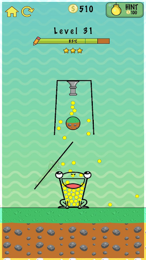 The Frog is feeling ravenously hungry. He want to eat candy and ask you a favor. Let draw a line or use the \HINT\ supporting to put balls on the Frog\s mouth. Happy Frog have a lot of fun and levels. Let think out of the box and complete levels with your best. You can get the 3 stars with shortly line and receive some coins. Features: * personalization Happy Frog with Skin, Candy and Pencils * Levels from easy to challenging * Just logic thinking to draw a line and complete levels * Relaxing with music and puzzle Let enjoy with Happy Frog !