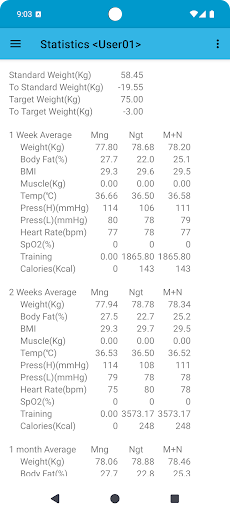 In the Health Log, the current weight, muscle mass, body temperature, blood pressure, oxygen concentration, exercise amount, etc. are visualized in a list display and a graph display. It\s easy and simple, so you can keep going every day. Items that can be managed are : - body weight - body fat percentage - BMI (automatic calculation) - Muscle mass - Body temperature - blood pressure - Pulse rate - Oxygen concentration - Training amount - Calories burned - Sleep You can manage morning and night data. Body temperature can be managed up to two digits after the decimal point according to the basal body temperature. Each ·Graph ·List It can also be displayed in. Training amount and calories burned can be linked with \Exercise Walking\: https://play.google.com/store/apps/details?id=com.jimdo.uchida001tmhr.stepcounter You can also start : Medication management app \Medication Schedule 2\ https://play.google.com/store/apps/details?id=com.jimdo.uchida001tmhr.medicineschedule2 and Meal photo management app \Meal Photo\ https://play.google.com/store/apps/details?id=com.jimdo.uchida001tmhr.mealrec There is a function to print the data or report it as a CSV file. A plug-in is required for printing. EPSON (operation confirmed): https://play.google.com/store/apps/details?id=com.epson.mobilephone.android.epsonprintserviceplugin Canon: https://play.google.com/store/apps/details?id=jp.co.canon.android.printservice.plugin For statistical information, you can also get the average of standard weight, weight difference to the target weight, 1 week, 2 weeks, 1 month, 2 months, 3 months, 6 months. Theme color - White - Sky blue - Green - Yellow - Orange - Pink You can choose from. It also has a data export / import function that can be used for device model changes. You can manage the data of multiple users. (in-app purchase needed) [manual] https://www.indigosoftware.org/manual/health-log/