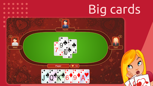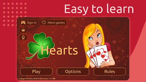 “Hearts” Card Game - Play Anywhere, Anytime! Discover the classic Hearts card game, playable by three to six players. It emerged in the early 20th century and is named after its highest penalty card, the Queen of Spades or Black Lady. IGC Mobile Hearts Deluxe version supports the most popular American variation of the Hearts game for four players, the Omnibus variation, and variations of Moons. Don’t worry if you’re new to this game - this free sequence game will teach you how to play with our intuitive AI. Our artificial intelligence adapts to your Hearts card gameplay style, ensuring a fair and engaging experience. Play whenever and wherever! Key features of “Hearts” by IGC Mobile: - Enjoy a beautiful modern game interface in landscape mode. - Clear and Bright Cards: Large, bright, and easy-to-read cards. - Multiple Card Decks: Three card designs to choose from. - Customization: Personalize backgrounds, avatars, and player names. - Device Compatibility: Optimized for both phones and tablets. - Rule Variations: Includes “Shoot the Moon” and “Omnibus” variations. Free to Play: Hearts is a free card game. We do not disturb our players with advertising on the playing field; only occasional ads may appear between rounds. Upgrade to the premium version to remove all ads. Let\s dive into the game! How to Play: In each round of Hearts, players participate in several deals or hands, with each player receiving 13 cards. Heart cards carry a penalty of one point each, while the Queen of Spades incurs a hefty 13 points. The Omnibus option adds another significant bonus card - the Jack of Diamonds, which reduces the penalty score by 10 points. Achieving a dramatic feat called “Shooting the Moon” involves collecting all available points, including the Queen of Spades. Scoring: The game continues until a player reaches 100 points. Two other game versions are available: a shorter game with a 50-point limit and a longer one that extends up to 150 points. The player with the lowest score emerges as the winner. Need Help? For any questions or issues, contact our support team at support@softick.com. Enjoy the game! Let\s start playing Hearts Deluxe!