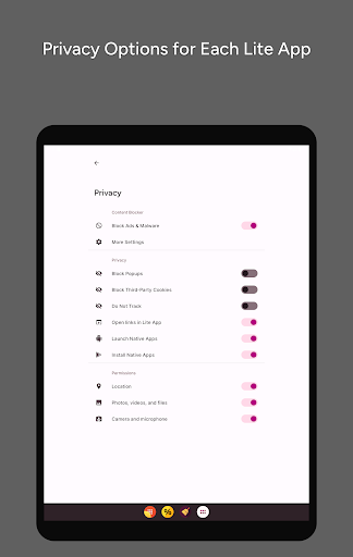 BETTER THAN NATIVE APPS • Lite Apps take up almost no space, best for low storage devices • They don’t run in the background, which saves battery • User Scripts: Run your own custom extension scripts! • Content Blocker: Block ads, malware, misinformation, & targeted propaganda. Built-in & customizable: You can pick what to block. BETTER THAN TRADITIONAL BROWSERS COMPARE HERMIT WITH TRADITIONAL BROWSERS https://hermit.chimbori.com/features/compare • Each Lite App opens in its own permanent window, not a new browser tab each time • Links clicked in other apps can be opened directly in Hermit Lite Apps • Settings, permissions, themes & icons are saved separately for each Lite App • Share links from other Android apps to your Lite Apps SANDBOXES: MULTIPLE PROFILES / CONTAINERS Hermit is the only Android browser with Sandboxes: Isolated Containers with Multiple Profiles. • Sandboxes keep your Web browsing isolated in separate containers • Use multiple accounts, all active at the same time, in the same browser • Keep work accounts and personal accounts separate • Ideal for privacy-invasive social sites • Use permanent Incognito Mode for sites that offer free content to new users ADVANCED BROWSER FOR POWER USERS It takes a bit of learning & understanding to use Hermit effectively — We’re here to help! GETTING STARTED GUIDE https://hermit.chimbori.com/help/getting-started HELP ARTICLES & FAQ https://hermit.chimbori.com/help PRIVACY + NO ADS = PAID PREMIUM Thanks for supporting the active development of a privacy-friendly app designed for power users like you! • To continue investing in new features for many years, we charge money for our apps. • Unlike other browser makers, we are not in the business of selling ads or your personal information. • No advertisements, no personal data collection, no behavior tracking, no shady SDKs in any of our apps. • Most features can be used for free! ADVANCED BROWSER FEATURES • USER SCRIPTS: Run your own custom extension scripts! • READER MODE: Article extraction is done on-device to protect your privacy • DARK MODE: Great for late night reading! • FAST & PRIVATE: Browse fast by blocking advertisements and other harmful content that slows down your phone. • MULTI WINDOW: Use two Lite Apps at once on supported devices • DOUBLE BACK: Ever got stuck because the back button takes you to the same page? Try Hermit’s Double Back feature! • BACKUP YOUR LITE APPS: Custom backup solution when moving between devices • CUSTOM USER AGENT: Mobile, Desktop, or any other custom user agent • ATOM/RSS FEED NOTIFICATIONS: Get immediately notified when a web site publishes new content. • WEB MONITORS: Feeds not supported? Hermit can monitor any specific part of any web page & notify you when it changes. UNLIMITED CUSTOMIZATION No other browser lets you customize so many settings! • CUSTOM ICONS: Pick any icon for your Lite Apps, or create a custom monogram! • CUSTOM THEMES: Create your own themes for any site • TEXT ZOOM CONTROLS: Change and save text zoom settings individually for each Lite App • DESKTOP MODE: Load desktop sites instead of mobile sites • FULL SCREEN MODE: Focus on your content, no distractions • CUSTOMIZABLE CONTENT BLOCKER can block ads, malware, & misinformation. You pick what to block. NEED HELP? SEEING AN ISSUE? CONTACT US FIRST. We are here to help you! But we cannot help you through reviews, because they don’t include enough technical details. Contact us through the app, and we’ll make sure you are happy!