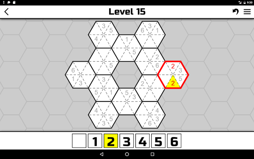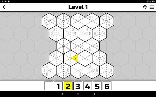 Votre objectif est de remplir tous les hexagones avec des nombres de 1 à 6. Certains nombres sont déjà remplis. Il n\y a que deux règles simples dans le jeu : • Il ne peut y avoir que des nombres uniques dans chaque hexagone (1, 2, 3, 4, 5, 6). Par conséquent, il ne peut pas y avoir deux nombres identiques dans un hexagone. • Deux cellules adjacentes d\hexagones différents doivent avoir le même numéro. Cela semble facile, non? Cependant, passer certains niveaux peut prendre beaucoup de temps et d\efforts. Nous avons créé 3000 niveaux uniques avec différents degrés de difficulté dans notre application. Si vous jouez à Hexoku pour la première fois, essayez le niveau \Novice\. Chaque niveau de difficulté contient 500 niveaux uniques. Où le niveau 1 est le plus facile et 500 est le plus difficile. Si vous pouvez facilement résoudre le 500ème niveau d\un niveau de difficulté, essayez le premier niveau du niveau de difficulté suivant. Bonne chance!