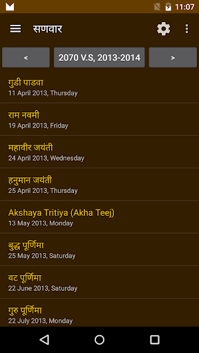 卐 Hindu Calendar 卐 A Complete app for all Calender, Panchang, Muhurt and Kundali needs Everthing works offline too!! • Panchang for hundreds of years! Details for any day of the calendar. Including tithi, paksha (shukla and krishna), yoga, karana, nakshatra, vaar, samvatsar (Year), maah (month purnimant and amavasyant), zodiac of moon, ayana (Dakshinayan and Uttarayan) and the ritu (Season). Padas, moon rise and moon set, sunrise and sunset for the chosen location. • Kundali (or Kundli) for any location and any date and time. In North Indian, South Indian and East Indian style. Save your kundalis for accessing them later. Griha (Planet) positions in both Sayana (Tropical) and Nirayana (Sidereal) system. (including shani, rahu and ketu). Uses Lahiri / Chitrapaksha Ayanamsa has support for Raman and Krishnamurti (Old) Ayanamsa too. • Share your Kundali as a PDF. Or share it as a link. • Kundali Matching : Ashtakoota Guna Milan of the kundalis, showing the score out of 36 gunas. • Vimshottari Dasha for the kundali along with the rashi, lagna rashi, Varna, Nadi, Yoni, Gana and Balance of Dasha. • Unique Hindu Clock showing the eight pahars (prahars) of the day. Purvanha, Madhyanha, Aparanha, Sayan, Pradosh, Nishith, Triayama, Usha. Ishta kaal for your place (Hindu Time). Shows real time Ghati, Vighati or Pal or Kal, Vipal or Lipt or Vikal. • Muhurt : Day and Night Choghadiya, Rahukalam, Yama Ghantam, Guli Kalam, Dur Muhurt and Abhijit Muhurtam . All calculated for your chosen location. • Sankalp Mantra and Disha Yantra (compass) showing the hindu direction for ease of doing pooja. • Explore the sky! Find celestial objects, nakshatras, rashis and grihas in the sky, using the companion app Indian Sky Map. • Widgets showing the moon phase, and the lunar date, and one showing moon rise, moon set and sun rise sun set timings. • A monthly Calendar view highlighting the Ekadashi, Chathurthi, Poornima and Amavasya. Shows the monthly list of festival. Also showing the moon phase for each date. • Find the date of Hindu festivals and events including Diwali (Deepawali), Chhath, Karwa Chauth, Holi, Maha Shivaratri, Ramnavami, Rakshabandhan, Sankranti. • Save and track your own tithis. • Support for custom location. Choose from over 3000 cities, or choose your own location. • Has the options of Vikram Samvat, Vikram Samvat Kartak and Indian National Calendar (Saka) year systems. Please check the month type you follow, Amavasyant and Purnimant, and set it accordingly in Settings.