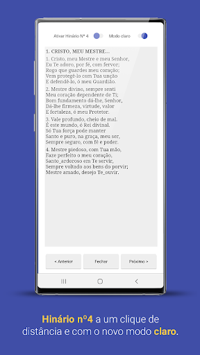 ___________________ Atenção: O aplicativo na versão \Plus\ continua sendo disponibilizado para aparelhos mais antigos. ____________________ ESTE APLICATIVO É GRATUITO! NÃO PAGUE POR SEMELHANTES A ESTE! Este hinário foi desenvolvido para membros da Congregação Cristã no Brasil, afim de facilitar o acesso ao mesmo. O Hinário CCBVirtual PRO 2021 possui: * 480 hinos oficiais do hinário de Nº5. * 6 coros oficiais do hinário de Nº5. * 12 ensinamentos oficiais do hinário de Nº5. * Prefácio. * Índice Geral. * Correlação dos hinos do Novo para o Antigo (do 5 para o 4), automaticamente. * Introdução completa para todos os hinos, inclusive os coros. * Player aleatório offline (TuneCCB) com acesso às letras. * Player com playlist (Sync CCB) de até 15 faixas. * Reprodução parcial em soprano, contralto, tenor e baixo, com opção de volume para cada. * Opção para baixar por completo ou visualizar as partituras online (Dó, Mi, Organistas, Cordas e Si bemol). * Modo Claro ou Escuro tanto para a capa, quanto para leitura. Observações: * O hinário é off-line e não necessita de conexão com a internet para executá-lo (com exceção do download das partituras); * Possui interface minimalista e intuitiva; * Para aparelhos mais antigos (anteriores ao Oreo 8) alguns recursos podem não funcionar corretamente. * Lembre-se que este aplicativo não substitui o uso do hinário convencional em casas de oração e nos demais eventos.