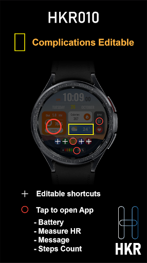 Wear Os Watch Face With Customizable Complications WATCH FACE INSTALLATION NOTES: Check your watch\s compatibility with WEAR OS before proceeding with the installation. (Note: Galaxy Watch 3 and Galaxy Active are not WEAR OS devices.) Compatible devices include API level 30+ Google Pixel, Galaxy Watch 4, 5, 6, and other Wear OS models. Watch faces don\t automatically apply on your watch screen after the installation. That\s why you MUST set it on your watch\s screen. Features: - Hour Minute Second - Am Pm or 24H Format - Editable Complication - 4 Editable Shortcuts - Steps Count - Heart Rate - Distance - Calories - Battery Level - Unread Message Count Customization: 1. Touch and Hold Display 2. Tap on Customize Option Complications: You can customize with the any data you want. For example , you can select weather , world clock , sunset/sunrise , barometer etc. **Some features may not be available on some watches. For further support, please contact: hikarujrv@gmail.com PLEASE SEARCH \HKR\ FOR MORE WATCH FACE