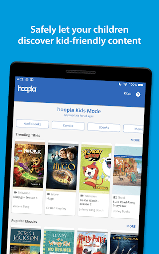 Discover limitless entertainment and knowledge with hoopla Digital. Access more than 1.5 million audiobooks, eBooks, comics and manga, music, movies, TV, and more with BingePass. Read, listen, and watch 24/7 without ads or late fees, free with your library card! eBooks: From gripping mysteries to thought-provoking non-fiction; heartwarming romance to captivating historical tales, hoopla\s vast eBook collection celebrates diversity by offering titles that resonate with readers from all walks of life. Audiobooks: Turn your commute, workout, or leisure time into an enriching experience with our extensive audiobook collection. Listen to captivating narrations by talented performers that bring stories to life. Movies and TV: hoopla\s expansive video content library offers popular movies, TV shows, and BingePasses for every age and interest. Whether you\re in the mood for Hollywood blockbusters or indie gems, you\ll find it all here. Music: From chart-topping hits to hidden gems, dig into a music library that suits your every mood. Create playlists, check out new artists, and enjoy uninterrupted album streaming. Or use the shuffle feature to have songs randomly played from one album or all albums you have currently borrowed. Comics and Manga: Read classic comic, graphic novel, and manga series, discover fresh titles, and follow your favorite characters on exciting adventures. Our groundbreaking ActionView reading technology brings comics and manga to life with a panel-by-panel reading experience. hoopla BingePass: With just one borrow, get unlimited access to entire collections of content for a limited time. It’s a great way to explore awesome online content—and a lot of it! Stream or Download: With no waiting, titles can be streamed immediately or downloaded to phones or tablets for offline enjoyment. Android Auto Compatibility: Access your favorite content on the go—whether you\re embarking on a road trip or just running errands—by integrating your entertainment experience with your vehicle using Android Auto. Easy Access: Seamlessly switch between devices and pick up right where you left off. Your bookmarks sync across platforms, ensuring you never lose your place in a great story. Dark Theme: Enjoy reading and browsing comfortably in low-light environments with hoopla\s Dark Theme. Enhance your viewing experience and reduce eye strain during nighttime use. hoopla puts your public library at your fingertips—all you need is a library card. Download the app today! Content availability may vary based on library participation.