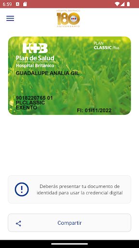 Conoce estos y otros usos de nuestra App descargándola ahora. • Ahora podes pedir turnos presenciales y virtuales de todos los estudios y prácticas médicas. • Cancelar y modificar tus turnos. • Visualizar turnos pendientes (ya sea que se hayan sacado de manera telefónica, a través del portal web o por la aplicación). • Agendar un turno para obtener una teleconsulta con el médico y la fecha de atención que elijas. • Conocer nuestros Centros Médicos • Si sos afiliado al Plan de Salud del Hospital Británico, accede a la credencial digital, para que siempre esté a tu alcance. La app pone toda tu información médica en tu teléfono, de una manera ágil y sencilla, estés donde estés.