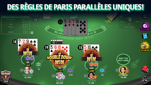 Jouez au Blackjack 21, au Texas Hold\em, aux machines à sous, et au poker vidéo du bout des doigts ! Vivez en ligne l\expérience d\un casino de Las Vegas comme si vous y étiez ! Jouez au blackjack avec chat vidéo en ligne avec vos amis et des joueurs et joueuses du monde entier. Vivez l\expérience d\une vraie soirée au casino et faites de nouvelles rencontres ! De nombreux jetons bonus et des événements en ligne vous attendent chaque jour ! Blackjack avec chat vidéo Parlez avec les autres joueurs et joueuses autour de la table et faites sauter la croupière ensemble ! Élaborez la meilleure stratégie de blackjack en temps réel Tables privées Invitez vos connaissances et organisez une partie de poker avec un chat vidéo en groupe. Des soirées de casino en ligne comme si vous y étiez. Rejoignez la ligue Faites une partie de blackjack et le tour est joué ! Montrez vos talents au blackjack et recevez de meilleurs avantages ! Collection de cartes Complétez des séries de cartes chaque saison et récupérez de nombreux jetons bonus ! Plusieurs règles de jeu Maîtrisez les stratégies classiques de Blackjack 21, puis tentez nos tables Double Luck et Golden Bet ! Tournois Blackjack 21 Affrontez d\autres joueurs et joueuses et gagnez le gros lot ! Découvrez plus de raisons de jouer à Blackjack 21 : House of Blackjack Connectez-vous et récupérez des jetons gratuits toutes les 30 minutes ! Complétez les missions du jour et obtenez plus de récompenses le lendemain ! Participez à des événements à temps limité et obtenez des jetons gratuits ! Placez des paris parallèles pour obtenir le jackpot et gagner jusqu\à 1 000 fois plus de gains au blackjack ! Êtes-vous un virtuose en comptage des cartes au blackjack ? Battez la croupière en 1 contre 1 dans une salle privée ! Garantie de l\égalité des mains - House of Blackjack est certifié RNG. Jouez toujours au blackjack avec des mains justes ! Disponible en plusieurs langues - Affrontez des joueurs et joueuses du monde entier ! Vous voulez plus que Blackjack 21 ? Vous pouvez jouer à tous vos jeux de casino favoris gratuitement avec House of Blackjack ! Texas Holdem Poker Jouez aux plus populaires des jeux de casino. Mains équitables garanties ! Machines à sous La plus grande collection de machines à sous classiques et vidéos. De nouvelles machines seront bientôt disponibles ! Poker vidéo Jouez plusieurs mains classiques de Jacks ou mieux ! L\équipe de Blackjack 21 : House of Blackjack, le meilleur jeu de blackjack gratuit, attend vos questions et commentaires avec impatience. hob_support@massivegaming.io Blackjack 21 : House of Blackjack est disponible uniquement pour les personnes majeures. Blackjack 21 : House of Blackjack ne propose pas de jeu d\argent réel ni la possibilité de gagner de l\argent ou des prix réels. L\entraînement ou le succès dans ce jeu ne garantit pas un futur succès dans de vrais jeux d\argent ou au casino.