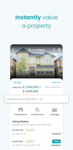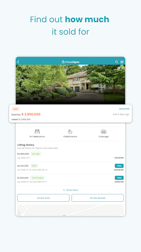 Real Estate can seem complicated — HouseSigma offers the most complete data in Canada to help you make better real estate decisions. Whether you’re looking to buy, sell, rent, or find out how much the house down the street sold for — HouseSigma is the only app you need. HouseSigma has been the Top Real Estate App in the GTA and has expanded to British Columbia. Loved by 1.5 million Canadians and counting! Search listings that go back to 2003 in the GTA and Greater Vancouver. Ottawa and other areas in Ontario go back as far as 2018. Alberta has been recently launched with data going back to 2020. We’re actively working towards offering more data throughout Canada. What HouseSigma has to offer: • Sold History - find out how much a property sold for, even if it was years ago • Watch Listings - get alerted as soon as the property has sold (or has been terminated, suspended, etc) • Watch Communities - get notified when there are updates in your desired communities (new listings, sold, terminated) • Watch Areas - get updates on specific areas of interest by setting up customized areas • School Scores - find homes near great schools based on scores • Home Valuation powered by AI - estimate a property on demand or view it right within listings • Market Insights - analyze the real estate market like a pro • Sold Comparables - easily find similar properties that sold nearby • Full service brokerage - work with some of the best agents to assist you with every need