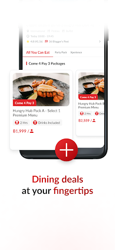 Want to enjoy a fixed price meal at top restaurants? Want to celebrate and looking for the best exclusive restaurant with affordable price? Tired of all the same old buffet places out there? HUNGRY HUB is your answer. Hungry Hub is an online booking application that offers various types of special packages and is only available on Hungry Hub. Moreover, we partnered with more than 1,000+ restaurants all over Bangkok, Pattaya, Chonburi, Khao Yai, Phang-Nga, Koh Chang, Koh Samui, Phuket and more to come! Our Packages All You Can Eat - an unlimited dining experience at a la carte restaurants as well as buffet restaurants suitable for everyone Party Pack - an all-inclusive set menu perfectly designed to share in a group Hungry@Home - Delivery service of premium set to your door just like how you eat at Hungry Hub’s partner restaurants Xperience - turn your ordinary vacation into a special moment whether it is outdoor activities or staycation Book in 4 fast and easy steps Search and book for the package you like Instant booking confirmation Arrive at the restaurant and enjoy! Talk to us If you’ve booked with Hungry Hub before, please tell us what you think. Your thoughts are valuable to us. Email us at support@hungryhub.com