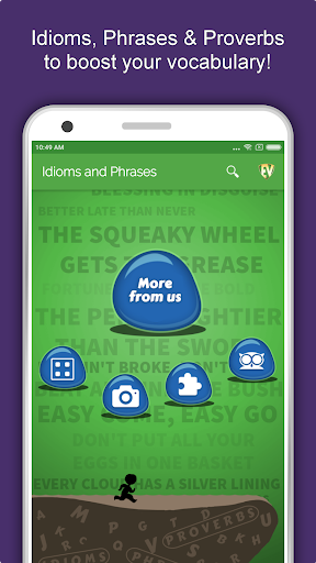 Different types of Idioms, Phrases, Proverbs and their description now at the tip of your finger. Increase your vocabulary with the different Idioms, Phrases & Proverbs Dictionary App along with their examples. With more than 4000 Idioms, Proverbs and Phrases this is one of the best and handy reference guide available in your pocket. This app is full of numerous QUIZZES to brush up your knowledge and challenge your learning. We have categorized all the common Idioms, Phrases & Proverbs Dictionary into 20 different genres starting from Action, Animals, Appearances, Business/ Professionals, emotions, interactions etc. to let users find the best terms. If that’s not enough, all the idioms, phrases and Proverbs are listed alphabetically with faster search facility, easy to navigate through entire app. Have a quick glance at some of its interesting features:- * Personalise - You can personalize these idioms, phrases, and proverbs with the photos available on your device gallery and share it with friends. * Autoplay - Listen to the all the phrases and their meanings with a single tap. * Quiz - Add on to your learning by matching usage with the relevant terms. * Contribute - If you think something is missing, contribute it! * EduBank℠ - Save what you have learned to revise later. So what are you waiting for? Install Idioms, Phrases & Proverbs Dictionary App today and embark on a new journey. We make SMARTY apps, “Simple Masterly Approach to Refine Thinking\ for YOU. Connect with us on:- Facebook- https://www.facebook.com/edutainmentventures/ Twitter- https://twitter.com/Edutainment_V Instagram- https://www.instagram.com/edutainment_adventures/ Website- http://www.edutainmentventures.com/