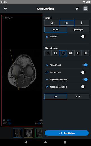 Les données chargées dans IDV (IMAIOS DICOM Viewer) ne sont pas envoyées sur internet, garantissant ainsi la confidentialité et la sécurité des informations médicales des patients (hors utilisation des fonctionnalités de partage). IDV prend en charge les fichiers DICOM de toutes modalités (échographies, scanner, IRM, PET, etc…) et offre des outils de défilement, de manipulation d’image et de mesure rapides et intuitifs. Il permet d’aisément ouvrir toute archive enregistrée sur votre appareil ou accessible en ligne pour un visionnage rapide où que vous soyez. Entièrement gratuite pour un usage personnel et non commercial, IDV est également accessible dans sa version en ligne sur le site Internet www.imaios.com. Attention : IDV n\a pas été testé ou homologué pour un usage médical. Il n\est PAS approuvé en tant que dispositif médical. Il ne peut être utilisé à des fins de diagnostic en imagerie médicale. IMAIOS DICOM Viewer est cité dans un article en tant que référence : 0.6009/jjrt.2024-1379