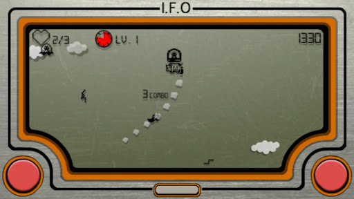 I.F.O is an old school LCD-style shoot\em up game. You have to shoot UFOs using a classic aircraft and save the animals which kidnapped by the aliens. Let\s save the Earth from the aliens! You are the last hero of the world. *Very simple controls - You can rotate aircraft by left & right buttons. and you can dash by pushing both buttons together. That\s all. *The mysterious alien power - If you kidnap an alien, your classic airplane gets power up by the mysterious alien power. *Unique weapon & item - You can change weapon while saving the animals kidnapped by the aliens. And you can recover your life at the same time. Depends on the kind of animal, you can earn a heart piece which make your maximum life larger. *Weapon mode - This is a mode where you aim for high scores only with your favorite weapon. I am number one with this weapon only! Total Battery is Gon Lee - Code, Art and Title BGM is OTOnoniwa In game BGM is Skipmore