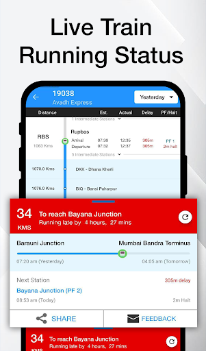 INDIAN RAILWAY TIMETABLE APP WITH 3+ MILLION DOWNLOADS! Embark on a seamless railway journey with the Indian Railway Timetable - Live app. With more than 3 million satisfied users, our app is your one-stop solution for all Indian railway-related inquiries. Track your train\s live location, check PNR status, and plan your trip with ease. Key Features 1. Live Train Running Status - Track your train\s real-time location and plan your journey accordingly. 2. PNR Status - Instantly check the current PNR status of your train booking with a PNR number. 3. Railway Seat Availability - Find available seats for each train based on class. 4. Indian Railway Timetable - Search train timetables and routes by train number or name. 5. Train Coach Position - Locate your train\s coach position for precise boarding on the platform. 6. Express Railway Ticket Booking - Book train tickets seamlessly within the app and more. 7. Check Fares for Trains - Explore fares for trains with detailed class information for source and destination stations. 8. Find Indian Railways Trains Between Two Stations - Easily discover trains between source and destination stations with all necessary information. 9. See Train Route on Google Maps - Visualize the train route on Google Maps for a better understanding of the journey. 10. Live Station Status - Search for all trains passing through a station in real-time. 11. View Cancelled and Rescheduled Trains - Stay informed about the daily list of cancelled and rescheduled trains. 12. Seat Map - Use the seat map to locate your seat in the coach. 13. Alarm While Approaching Station - Enable location permissions for an alarm alert before reaching your destination station. 14. Platform Locator - Find the platform where your train will arrive. **Why Download?** - Lightweight app loaded with powerful features. - Save PNR status for quick access with refresh functionality. - Access train schedules and statuses conveniently from the main screen. **Disclaimer:** The Indian Railway Timetable Live app is privately maintained and holds no official affiliation with Indian Railways, IRCTC, or related organizations. All content is for general information purposes and is intended for personal, non-commercial use. Verify information from official sources for accuracy. Download the Indian Railway Timetable - Live app now for a hassle-free and informed railway travel experience! ️