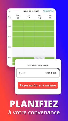 Commence à apprendre l’anglais, l’espagnol et d’autres langues lors de cours particuliers en ligne avec des professeurs natifs et diplômés. Avec italki, profite d’une expérience immersive d’apprentissage avec des professeurs natifs et apprends l’anglais, l’espagnol ou la langue de ton choix en partageant une connexion réelle et humaine avec ton professeur. Tu veux apprendre l’anglais ou l’espagnol avec un professeur natif ? Tu parles un peu japonais et ne sais pas comment continuer à apprendre ? Les horaires des écoles de langues ne te conviennent pas ? Télécharge italki et apprends à parler anglais, espagnol, japonais, italien, allemand, portugais et bien d\autres langues. Interagis avec des professeurs natifs en fonction de tes centres d’intérêt, ton expérience professionnelle, etc. Avec italki, fais la connaissance de professeurs diplômés pour apprendre les langues qui te plaisent le plus (anglais, espagnol, allemand, italien, japonais...). Saisis cette opportunité pour apprendre les langues, découvrir de nouvelles cultures et te développer sur le plan professionnel. Outre le soutien de la communauté d’italki, les cours particuliers en visio avec des professeurs natifs sont tout ce dont tu auras besoin pour apprendre les langues. italki, l’appli pour apprendre les langues grâce à des cours particuliers Plus de 150 langues disponibles avec des professeurs natifs Anglais Espagnol Italien Allemand Portugais Japonais Et bien plus ! Des cours de langues où et quand tu veux Tu veux profiter de ta pause déjeuner pour apprendre l’anglais, l’espagnol ou une autre langue? Choisis la durée du cours (30, 45, 60 ou 90 minutes) et planifie-le selon ton emploi du temps. Connecte-toi à italki via Classroom, Skype, Zoom ou toute autre plateforme pour tes cours de langues en visio. Apprends ce qui te plaît le plus dans la langue Les professeurs diplômés d’italki préparent des cours de langues personnalisés en adaptant le niveau et les thèmes à chaque étudiant pour apprendre une langue comme l’anglais. Sélectionne les cours selon tes priorités : conversation, grammaire, préparation d’un examen... Tu as d’innombrables options disponibles pour chaque cours de langue ! Paie uniquement ce que tu apprends Tu ne paieras pas une grosse somme sans être sûr de pouvoir assister à tous les cours. Avec italki, tu paies les cours que tu prends. Tu peux aussi acheter des crédits pour les dépenser petit à petit, ou acheter un pack plus avantageux. Les professeurs fixent leurs propres tarifs, qui débutent à moins de 10 €. Tu as le droit à 3 cours d’essai à moins de 5 € chacun. Une experience immersive d’apprentissage Apprends avec des professeurs natifs qui t’enseigneront tout ce que tu veux apprendre et avec qui tu pourras développer une connexion humaine réelle, au lieu d’un apprentissage linguistique superficiel et mécanique. Que tu veuilles apprendre l’anglais, l’espagnol ou toute autre langue, progresse rapidement grâce à une immersion totale dans la langue choisie. Interagis avec des milliers de professeurs natifs Trouve des professeurs d’anglais, d’espagnol, d’italien, de japonais, d’allemand, de portugais, et bien d’autres langues. Parcours leurs centres d’intérêt, leur spécialisation, ou même leur accent : anglais britannique ou anglais américain, pour apprendre l’anglais ou d’autres langues comme tu le souhaites. Une communauté au-delà des cours Découvre la communauté d’italki, où tu pourras poser tes questions, pratiquer l’anglais et apprendre les langues avec d’autres étudiants gratuitement. Invite tes amis à rejoindre italki et gagne 9 € à chaque fois que chacun d’eux dépense 18 € pour la première fois. Ils gagneront aussi 5 € s’ils t’ajoutent comme référence. Avec italki, étudie en ligne, apprends les langues avec des professeurs particuliers natifs et élargis tes horizons.