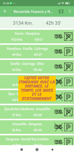 Cette application vous permettra de créer rapidement des itinéraires de camping-car ou de camping-car. Créer des lieux et les ajouter aux voyages. Chaque lieu est ajouté ses coordonnées et une carte avec l\itinéraire et un compteur d\itinéraire avec les distances et les temps de trajet seront affichés. Pour chaque lieu, vous pouvez stocker des zones, des parkings et toute information utile pour la visite. Si les zones et les parkings sont enregistrés à partir de Park4night, les coordonnées seront automatiquement chargées et un navigateur pourra être ouvert avec l\itinéraire vers cette destination. De plus, ils peuvent être ajoutés comme coordonnées du lieu. Les voyages complets et les lieux peuvent être partagés avec d\autres utilisateurs pour créer des voyages ensemble et discuter pour échanger des opinions à ce sujet. Il dispose d\un catalogue de voyage avec l\itinéraire à suivre et les informations de stationnement et de visite pour chaque lieu. Les utilisateurs peuvent ajouter leurs voyages au catalogue et les voyages du catalogue peuvent être copiés pour les personnaliser en fonction de chaque utilisateur. Des commentaires peuvent être ajoutés aussi bien aux voyages du catalogue qu\aux lieux qui le composent. Des informations météorologiques sont fournies à chaque endroit.