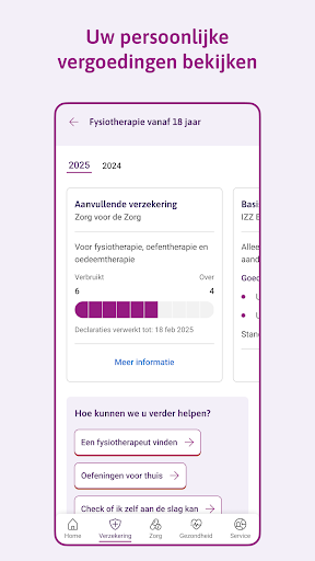 Heeft u onze best gewaardeerde zorgverzekeringsapp al? Daarmee regelt u zonder moeite al uw zorgzaken. Voor uzelf, voor anderen op uw polis én als medeverzekerde. Ook vindt u in onze app een uitgebreid aanbod van services voor gezondheid en zorg. Zo kiest u steeds makkelijker zelf wat op dat moment aan zorg het beste bij uw situatie past. Fijn om te weten: u logt altijd veilig en vertrouwd in via DigiD. Download de app direct en ontdek het gemak! Dit kunt u met de IZZ app: 1. Al uw zorgverzekeringszaken regelen - Supersnel een rekening declareren met een foto of pdf - Zien hoeveel eigen risico u over heeft - Rekeningen gemakkelijk betalen met iDEAL - Uw persoonlijke vergoedingen en budgetten bekijken - Altijd uw digitale zorgpas en polisgegevens bij de hand 2. Zorg vinden die bij u past - Een zorgverlener in de buurt vinden - Zien in welk ziekenhuis u het snelste aan de beurt bent - Persoonlijk zorgadvies van een zorgadviseur aanvragen - Gemakkelijk digitaal contact met uw huisarts - Snel informatie opzoeken over ziektes en gezondheid via Thuisarts.nl 3. Alles voor een gezonder leven - Handige services en apps die helpen met gezonder leven en bewegen - Toegang tot extra programma’s in de VGZ Mindfulness Coach en VGZ Soepel & Sterk Coach - Makkelijk uw medicijnen regelen via een online apotheek - Betrouwbare informatie over gezonder eten, beter bewegen en mentale gezondheid 4. En nóg meer voordelen - Chatten met onze chatbot of een medewerker - Direct vanuit de app bellen met de Alarmcentrale - Snel antwoord vinden op veelgestelde vragen - Gemakkelijk uw betaal- en contactgegevens aanpassen Deel uw tips met ons We willen onze app steeds een beetje beter maken. Daarom is uw mening als gebruiker heel belangrijk voor ons. Ziet u iets wat beter kan? Dan horen we dat graag. U kunt uw tips met ons delen via de smileys onderaan de Service pagina.