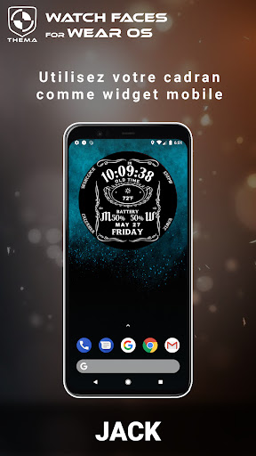 Jack Watch Face pour Wear OS ! Vous n\avez pas de montre Wear OS ? Vous pouvez malgré tout utiliser ce cadran comme widget d\horloge sur votre mobile ! ️PAS POUR SAMSUNG GEAR S2 / GEAR S3 !! (sous Tizen OS)️ Si vous en avez une, n\installez pas cette application. Pour trouver les applications compatibles avec votre montre, ainsi que du support, allez sur http://www.themaapps.com/watch_on_tizen_os ★ Fonctionnalités de Jack Watch Face ★ - Widget d\horloge (Seconde non affiché pour raison d\autonomie de batterie) - Jour & Mois - Batterie de la montre - Batterie du téléphone - Météo (nécessite l\appli mobile) Les réglages du cadran sont situés dans l\application \Wear OS\. Touchez simplement l\icone crantée affichée sur l\aperçu du cadran pour accéder à l\écran de réglage ! ★ Réglages ★ - Délai de rafraichissement de la fréquence cardiaque - Délai de rafraichissement de la météo - Unité de température - Mode 12 / 24 heures - Définition de la durée du mode interactif - Choix entre les notifications Wear petites/grandes/transparentes/opaques - Choix de la luminosité du mode ambiant n&b et éco - Choix parmi 2 fournisseurs de météo (Yr & OpenWeatherMap) - Choix d\avoir un zéro sur les heures - Choix du mode ambiant : éco, simple n&b, complet - Data: + Choix de l\indicateur à afficher + Choix parmi 8 indicateurs (Compteur de pas journalier, Fréquence cardiaque, E mail de Gmail non lus, etc...) + Complication (wear 2.0) - Interactivités + Accès à un écran de données détailles pour chaque donnée disponible + Modification par simple touché de la donnée affichée parmi les 8 données disponibles. + Choix du raccourcis à afficher sur les 4 emplacements + Choix du raccourcis parmi l\ensemble des applications installées sur votre montre! + Choix d\afficher les zones interactives - Gestionnaire de préréglages: + Sauver votre préréglage avec toutes ses options (données, fonctionnalités. TOUT est sauvé!) + Charger / Supprimer l\un de vos préréglages précédemment sauvés + Partager / Importer des préréglages - Définition manuelle ou automatique de la position ★ Installation ★ Watch Face Wear OS 1.X Ce cadran sera installée automatiquement sur votre montre via votre téléphone appairé. Néanmoins, si ce n\était pas le cas, lancer l\application Wear OS et aller dans les Réglages, puis appuyez sur \Resynchroniser les applications\. Wear OS 2.X Une notification sera affichée sur votre montre suite à l\installation mobile. Il vous suffira de l\utiliser pour démarrer l\installation du cadran. Si toutefois la notification n\avait pas été affichée, vous pouvez toujours installer le cadran en utilisant le Google Play Store disponible sur votre montre, en le recherchant par son nom. Widget mobile Il vous suffira d\effectuer un appui long sur l\écran de votre mobile, puis de sélectionner le widget correspondant au cadran pour le placer sur l\écran de votre mobile. Effectuez les réglages du widget en utilisant l\application. ** Si vous rencontrez des problèmes ou souhaitez simplement poser une question, n\hésitez pas à me contacter par mail (Anglais ou Français) avant de mettre une mauvaise note à l\appli :) Merci ! Website: http://www.themaapps.com/ Youtube: https://youtube.com/ThomasHemetri Twitter: https://twitter.com/ThomasHemetri Instagram: https://www.instagram.com/thema_watchfaces