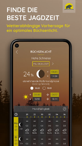 Bereits seit einigen Jahren gehört Jagdwetter zu den bekanntesten Jagd-Apps im deutschsprachigen Raum. Als zuverlässiger Jagdbegleiter im Hosentaschenformat liefert Dir Jagdwetter täglich alle wichtigen Daten für Deine Jagdplanung. In der Jagdwetter-App findest du neben Wetter- und Wind-Informationen für Dein Revier, ebenso Daten über Mondphasen, Mondhelligkeit sowie Jagdzeiten und Schonzeiten. Außerdem kannst Du Deine Reviergrenzen- und einrichtungen auf den Revierkarten anlegen, verwalten und teilen. Unsere intelligente Ansitzplanung hilft Dir zudem bei der Auswahl der besten Ansitzeinrichtung. Die Jagdwetter-App bietet Dir im Detail: - ein modernes und nutzerfreundliches Design - ein übersichtliches Jagd-Dashboard: Unsere Jagd- und Wetteruhr bietet Dir alle wichtigen Jagd-Daten auf einen Blick. - keine Limitierung beim Abruf von Wetterdaten, egal ob Gratis- oder Premium-Version - ausführliche Detailinformationen zum Wetter, zur Mondhelligkeit, zu den Mondphasen, zu den Jagdzeiten und Schonzeiten - Informationen über Solunardaten mit Jagderfolgswahrscheinlichkeiten für den aktuellen Tag oder für die Zukunft - eine umfassende Revierverwaltung zur Darstellung von Reviergrenzen und Reviereinrichtungen, zum Speichern, Exportieren und Teilen unter Mitjägern - eine intelligente Ansitzplanung Jagdwetter ist in einer Gratis-Version und Premium-Version verfügbar. ANMERKUNG ZU IN-APP KÄUFEN + Der Preis für Jagdwetter Premium beträgt 19,99 € pro Jahr. + Die Laufzeit des Abonnements beträgt 1 Jahr. + Du kannst das Abonnement jederzeit kündigen. Die Kündigung tritt zum Laufzeitende in Kraft. + Die Bezahlung erfolgt über Deinen Google-Play-Account nach der Bestätigung der Zahlung. + Das Abonnement verlängert sich automatisch jedes Jahr weiter, sofern Du das laufende Abonnement nicht bis 24 Stunden vor dem Ablauf kündigst. + Dein Google-Play-Account wird innerhalb der letzten 24 Stunden vor Ablauf des Abonnements für die automatische Verlängerung belastet. + Das Abonnement kannst Du in den Einstellungen Deines Gerätes nach dem Kauf verwalten.
