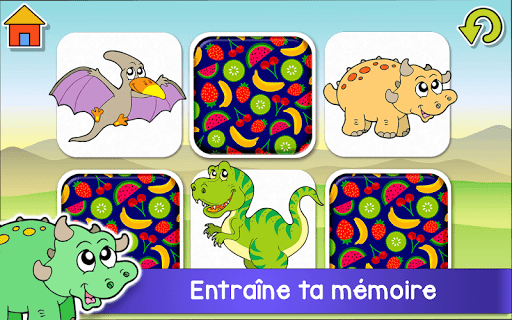 CINQ jeux amusants et passionnants avec beaucoup de dinosaures pour tous les amateurs de dinosaures! Aventure Dinosaures Ceci est un jeu simple pour les tout-petits. Creusez des os de dinosaures en frottant l\écran. En creusant, vous pouvez trouver des os de dinosaures et des articles au hasard. Lorsque vous trouvez tous les os, le dinosaure s\anime! Coloriages Ceci est une application de dessin simple mais amusant pour les enfants. Colorez de jolis dinosaures, amusez-vous à créer vos propres griffonnages en mode tirage libre et amusez-vous aux combinaisons de couleurs délirantes créées par le bouton aléatoire. Puzzle Dans ce jeu de puzzle intuitif pour enfants et adultes, vous pouvez choisir d’utiliser 6, 9, 12, 16, 30 ou 56 pièces, en ajustant la difficulté au niveau de compétence approprié. Idéal pour la relaxation et la coordination œil-main. Si vous ou vos enfants aiment les jeux de dinosaures et les casse-tête, ils adoreront ce puzzle rempli de superbes images de dino! Mémoire Ce jeu de mémoire de dinosaure est le jeu de société classique qui aide à développer les capacités de mémoire des enfants. Il contient des images mignonnes de dinos tels que T-Rex, ptérodactyle, stegosaurus et plus. Cinq difficultés différentes (6, 8, 12, 16 et 20 cartes) vous permettent de pousser votre mémorisation au maximum! Gratter et Colorier Un jeu à gratter et à colorier avec d\incroyables dinosaures! Dans ce jeu, les enfants découvriront une image cachée en mode scratch ou peindront en mode coloration et apprendront également le nom de chaque dinosaure au cours de leur jeu. Information: - Entraînez la coordination œil-main - Entraîne la mémoire et la mémorisation - Explorez votre créativité - Nous utilisons Google Analytics pour collecter des statistiques anonymes nous permettant d’améliorer le jeu. Nous pensons que c\est un excellent pack de jeu gratuit avec un peu de tout pour les fans de dinosaures - mais qu\en pensent vos filles ou vos garçons? Téléchargez notre jeu aujourd\hui, laissez un commentaire et faites le nous savoir! Music: \Quasi Motion\, \Artifact\, \Montauk Point\, \Earth Prelude\ Kevin MacLeod (incompetech .com) Licensed under Creative Commons: By Attribution 3.0