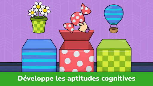 Les jeux pour enfants sont un excellent moyen d’aider au développement des tout-petits de manière amusante et intéressante. Cette application de jeux pour les tout-petits deviendra la préférée de votre enfant et l\aidera à apprendre facilement en jouant. Notre application d\apprentissage propose 30 activités préscolaires pour les tout-petits, qui aideront votre bébé à développer des compétences de base telles que la coordination œil-main, la motricité fine, la pensée logique et la perception visuelle. Ces jeux conviendront aux filles et aux garçons et peuvent faire partie de l\éducation préscolaire de vos enfants. - Jeu de taille pour tout-petits: comprendre et apprendre les différences de taille en triant l\inventaire dans les bonnes cases. - Jeu 123: jeu pour que les tout-petits puissent apprendre à compter les chiffres 1, 2 et 3. - Jeu de puzzle: un puzzle simple pour les enfants pour apprendre à améliorer la coordination œil-main. - Jeu de logique: développer la mémoire et la logique avec des animaux mignons. - Jeux de formes: trier les objets par forme pour développer la perception visuelle et la coordination œil-main des tout-petits. - Jeux de couleurs: trier les objets par couleur en montant dans un train ou en équipant un bateau. - Jeu de logique: apprendre à comprendre le but des éléments présentés. - Jeu de motifs: développer la perception visuelle des tout-petits en triant des éléments qui comprennent différents motifs. - Jeu de mémoire: choisir l\objet correctement montré précédemment et qui correspond aux autres par son type dans ce jeu pour les tout-petits. - Jeu d\attention: développer l\attention et la motricité fine des tout-petits dans un jeu simple mais très amusant. Ces jeux éducatifs pour les tout-petits sont parfaits pour les enfants de la maternelle et les enfants d\âge préscolaire de 2, 3, 4 ou 5 ans. Vous ne trouverez jamais de publicités ennuyeuses sur notre application gratuite pour enfants. Nous sommes toujours heureux de recevoir vos commentaires et suggestions. Téléchargez le jeu d\apprentissage pour tout-petits maintenant et commencez à participer au développement et à l’éducation de vos bébés sans attendre grâce à ce mini-jeu complet.