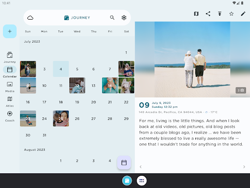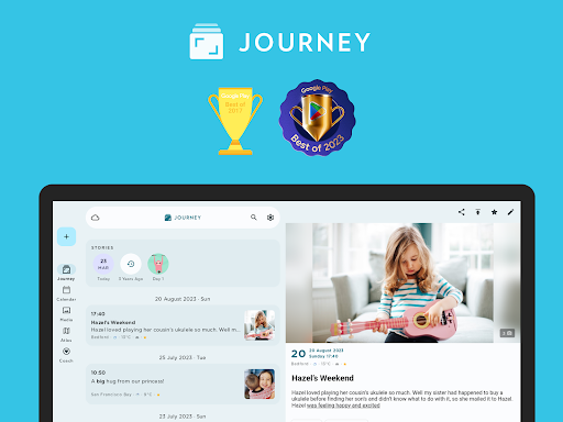 Join millions of Journey users, from all walks of life, to embark on your unique life journey towards a deeper gratitude for life, better health, and a calmer mind through journaling in Journey diary. Capture Beautiful Memories Capture both moments & memories with photos, videos or audios that you can look back on in the future and remember the events that happened that day. Create Stunning Journal Entries Explore a variety of journaling & note-taking tools in Journey\s diary editor. Change the paragraph style, stylize your text with bold, italics and strikethrough, organize your writing with bullets, tables, and checklists, and play around with text color. Throwback to Your Happiest Moments Get notified and look back at your best memories and your journal entries from a week, a month, or even a year or two ago. Tend To Your Emotions With Mood-Tracking Take note of your feelings while journaling, and keep track of how your mood fluctuates across your journal entries. View how your mood shifts across 30 days in your stories. Shared Journal^ Collaborate and create cherished memories with your loved ones, family members, or even friends on an unforgettable journey together. End-to-End Encryption^ Enjoy unparalleled peace of mind with end-to-end encryption†. Safeguard your personal moments & memories and ensure your privacy remains intact throughout its journey to the cloud. Private & Secure Space Set up a passcode and Android Biometric to keep your journal & diary entries private and secure. Power Up Your Journal With Plugins Power up your journaling routine with an extensive range of journal plugins. Explore functions such as exporting to DOCX & PDF, adding images & media, and blog publishing on Journey. Journal Coach & Templates Breeze through journaling with more than 60 curated journaling programs from topics such as self-confidence, boundary making, and practicing mindfulness. Kick-start your reflections with templates that have thought-provoking prompts and questions. Create Custom Templates Take charge of your journaling by creating custom templates that suit your needs. Create, duplicate, and delete custom templates at your convenience. Other Features: ⁃ Cloud sync - View entries in the calendar, photos, videos, and on a map - 14 Color themes ⁃ Passcode and fingerprint lock ⁃ Available on mobile, desktop and web - Add weather & location to entry ⁃ View entries in timeline, calendar, map ⁃ Advanced search: Activity, mood, favorites - Interlink notes ⁃ Compose entries via email - Zapier integration - Publish to blogs - Daily journal reminder To learn about Journey, please visit this page: https://journey.cloud.