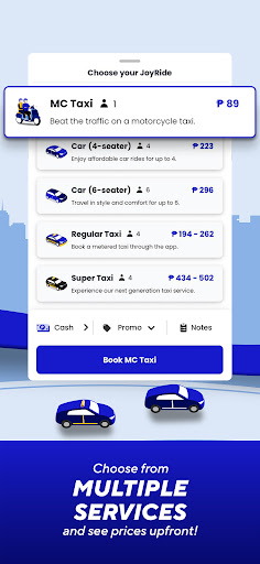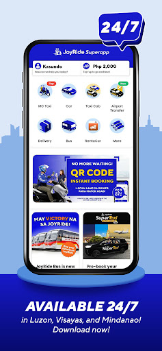 JoyRide is a leading mobility superapp offering affordable, convenient, and reliable transportation services in the Philippines. Since 2019, JoyRide has been empowering Filipinos with access to quality, value-for-money services, supported by a user-friendly app, an extensive network of driver-partners, and a diverse range of on-demand mobility solutions. Having served millions of bookings, JoyRide remains committed to serving the commuting public and has expanded throughout Luzon, Visayas, and Mindanao. Today, JoyRide is available 24/7 in Metro Manila, Rizal, Bulacan, Cavite, Laguna, Pampanga, Bicol, Cebu, Cagayan de Oro, and more! Check out our app for new regions available. Explore our different services: Mobility • JoyRide MC Taxi Beat the traffic safely and swiftly with our motorcycle taxi service. • JoyRide Car Travel in style and comfort with 4-seater or 6-seater vehicles. • JoyRide Taxi Cab No need to hail—easily book a metered taxi at your fingertips. • JoyRide Super Taxi Experience affordable luxury with our next-generation taxi service. • JoyRide Bus (New!) Purchase bus tickets through the app for various bus routes. Delivery • JoyRide Delivery Express motorcycle deliveries for documents, parcels, or food. • JoyRide Pabili Buy-for-me service handling your daily errands. • Happy Move 2-wheel and 4-wheel delivery with multi-stop and scheduling features. Others • JR Mall Online marketplace for food and groceries, delivered right to your doorstep. • Buy Load Purchase mobile prepaid load at your convenience.