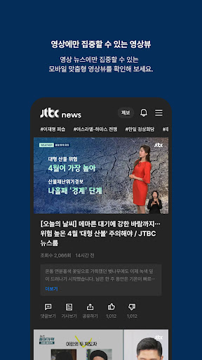 뉴스 현장의 모든것, 확 달라진 JTBC 뉴스앱에서 쉽고 빠르게 경험해 보세요! 1) 한눈에 보는 콘텐츠 놓치면 안 될 라이브부터 JTBC 뉴스룸, 디지털 오리지널 그리고 인기 있는 쇼츠까지 한곳에서 볼 수 있어요. JTBC만의 다양하고 풍부한 콘텐츠를 확인해 보세요. 2) 신속하고 정확하게 지금 모두가 주목하고 있는 이슈를 빠르게 타임라인에서 확인할 수 있어요. 긴급한 뉴스 속보가 있을 때는 누구보다 빠르게 받아볼 수 있어요. 3) 뉴스에만 몰입 영상에만 집중할 수 있도록 고화질 영상을 제공해요. 뉴스에 몰입할 수 있도록 영상을 끊이지 않게 연속으로 볼 수 있어요. 4) 편안한 환경 확 달라진 뉴스 플랫폼에서 관심 기사를 스크랩하고, 기사를 듣고, 더욱 편리해진 가독성을 경험해 보세요. 5) 꼭 맞는 콘텐츠 마음에 드는 콘텐츠가 있으면 구독해 보세요. 내 취향에 딱 맞는 콘텐츠를 추천해 드려요. 알림으로 받아볼 수 있는 기회도 놓치지 마세요. 6) 기자들과 직접 소통 기자들과 이야기를 나눌 수 있는 공간입니다. 나의 관심 기자가 직접 운영하는 기자톡에서 소통하며 제보와 응원의 한마디를 보내 보세요. *Android 6.0 미만 버전에서는 일부 서비스에 제한이 있을 수 있으니 최신 버전으로 업데이트 부탁드립니다.[고객센터 안내] 이메일: jtbchelp@jtbc.co.kr 전화번호: 02-751-6000 ---- 개발자 연락처 : - 주소 : 서울시 마포구 상암산로 48-6 1층 - 전화번호 : 02-751-6000 - 사업자등록번호 : 104-86-33995 - 통신판매업신고번호 : 2017-서울마포-0896 - 발행기관 : 공정거래위원회 ---- 개발자 연락처 : (주)제이티비씨 마포구 상암산로 38 (상암동) 마포구, 서울특별시 03909 South Korea 1048633995 2017-서울마포-0896 서울특별시 마포구