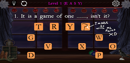 Well, I created this game a long time ago to practice my skills, however, after a few years, I thought to update it. This game is a simple word puzzle game, you will get an incomplete sentence, riddle or maybe something unique and you will have to find the missing part and complete it, oh and if you are clever I have added some good stuff for you to find in-game. Good luck! * Credits: * Icon made by Good Ware from www.flaticon.com * Sound effects obtained from www.zapsplat.com