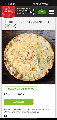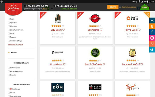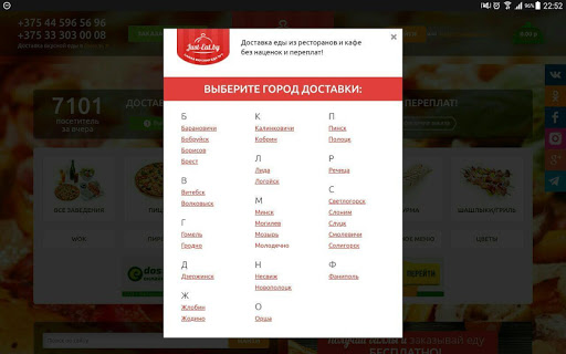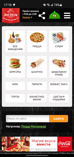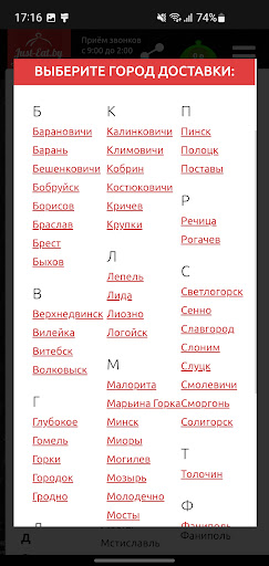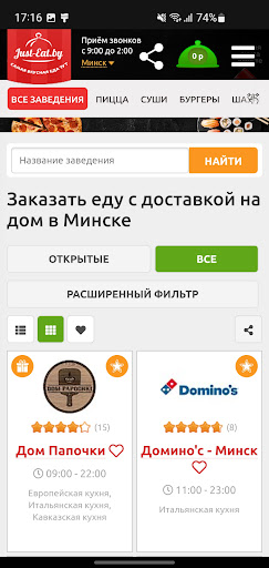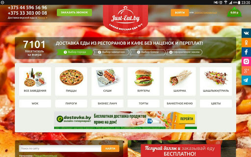Just-eat.by – быстрое и удобное приложение для заказа еды, цветов и подарков где есть: Более 700 ресторанов и кафе в городах Беларуси, широкий выбор блюд и кухонь, все ваши любимые кафе и рестораны, доставка еды на дом и в офис, а также доставка свежих продуктов!