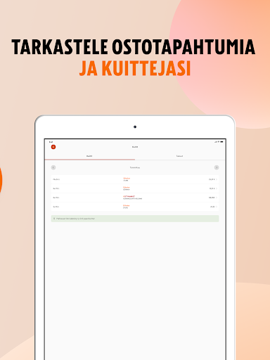 RUOKAKAUPPASI TASKUSSA K-Ruoka-sovellus on paras kauppakaveri puhelimessasi! K-Ruoasta löydät ruoan verkkokaupan, kauppasi valikoiman ja tarjoukset, henkilökohtaiset edut, maukkaimmat reseptit, Plussa-korttisi ja paljon muita toimintoja, jotka tekevät kaupassa käymisestä helppoa. AKTIVOI MOBIILIETUSI SOVELLUKSESSA K-Ruoka-sovelluksesta löydät mobiiliedun, joka on jopa -40 % alennus tuotteesta joka viikko! Aktivoi mobiilietu sovelluksessa ja lunasta etusi lähimmästä K-ruokakaupasta. PLUSSA-KORTTI AINA MUKANASI Plussa-korttisi on aina helposti saatavilla K-Ruoka-sovelluksessa. Näytä Plussa-kortin viivakoodia kassalla ja hyödynnä Plussa-edut helposti! HYÖDYNNÄ VAIHTUVAT OMAPLUSSA-EDUT OmaPlussa-edut ovat ostohistoriasi perusteella sinulle räätälöityjä tarjouksia ja huippuetuja, jotka löydät K-Ruoka-sovelluksesta. Joka viikko uutta, joka viikko parhaat tarjoukset sinulle! VOITA PALKINTOJA VAIHTUVISTA PELEISTÄ Pelaa ja voita tuotepalkintoja K-Ruoka-sovelluksen peleissä. Säännöllisesti vaihtuvissa peleissä on tarjolla sadoittain palkintoja, kokeile onneasi ja voita! TILAA OSTOKSET KÄTEVÄSTI SOVELLUKSELLA K-Ruoka-sovelluksen avulla teet helposti viikon ruokaostokset! Tilaa sovelluksella ruokatilauksesi kotiin kannettuna, nouda ostokset valmiiksi pakattuna lähikaupastasi tai nappaa tilauksesi pakattuna mukaan matkasi varrelta olevasta kaupasta lähes mistä päin Suomea tahansa. INSPIROIDU HEKULLISISTA RESEPTEISTÄMME Jos ruokainspiraatio on hukassa, löydät K-Ruoka-sovelluksesta maukkaimmat reseptit niin arkeen kuin juhlaan! K-Ruoka-sovelluksen eri reseptiominaisuudet helpottavat ruoanlaittoa ja saat myös reseptien raaka-aineet koottua näppärästi verkkokaupan ostoskoriin. TARKASTELE OSTOTAPAHTUMIA JA KUITTEJASI Ostotapahtumasi ja kuittisi löydät yhdestä samasta paikasta K-Ruoka-sovelluksesta! Myös takuukuittisi pidät näppärästi tallessa K-Ruoka-sovelluksessa. Ota käyttöön Paperiton Palvelu (toim. huom. tai sähköiset kuitit) ja saat kuittisi kassalla vain sähköisessä muodossa.