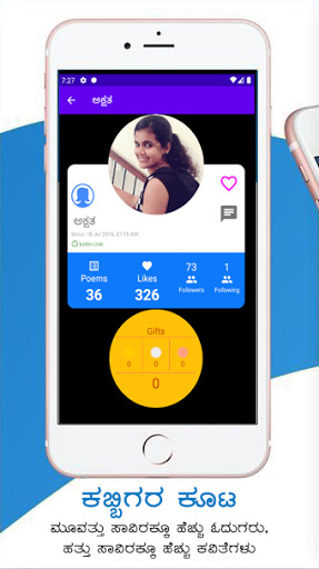 Kannada Poems, The android app for short poems. Brand new design. A chance to write and save poetry offline. The poems you read remain on your mobile. It can also be read offline. Poems can be shared to other social apps (WhatsApp, Facebook, etc.) on your mobile. Group Kannada Chat Opportunity to interact with other poets. You can earn reward coins and use them to give gifts to others. This is Kannada\s first social application. There are many new options in progress ...