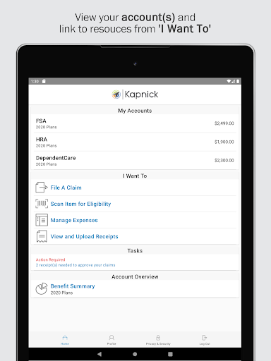 Save time and hassles while making the most of your HSA, HRA, and FSA health benefit accounts by quickly checking your balances and details. Our secure app makes managing your health benefits easy through real-time access and intuitive navigation to all your important account information on the go! Powerful features of the app include: Easy, Convenient & Secure • Simply login to the intuitive app using your same health benefits website username and password (or follow alternative instructions if provided) • No sensitive account information is ever stored on your mobile device Connects You with the Details • Quickly check available balances 24/7 • View charts summarizing account(s) • View claims requiring receipts • Click to call or email Customer Service Provides Additional Time-Saving Options (if supported or applicable to your account(s)) • File a claim towards your medical FSA and HRA • Take or upload a picture of a receipt and submit for a new or existing claim • View, contribute and distribute HSA transactions • Pay bills from any account and add a payee • Using the Dashboard, enter medical expense information and supporting documentation • Retrieve your forgot username/password • Report a debit card as lost or stolen Powered by WEX Health